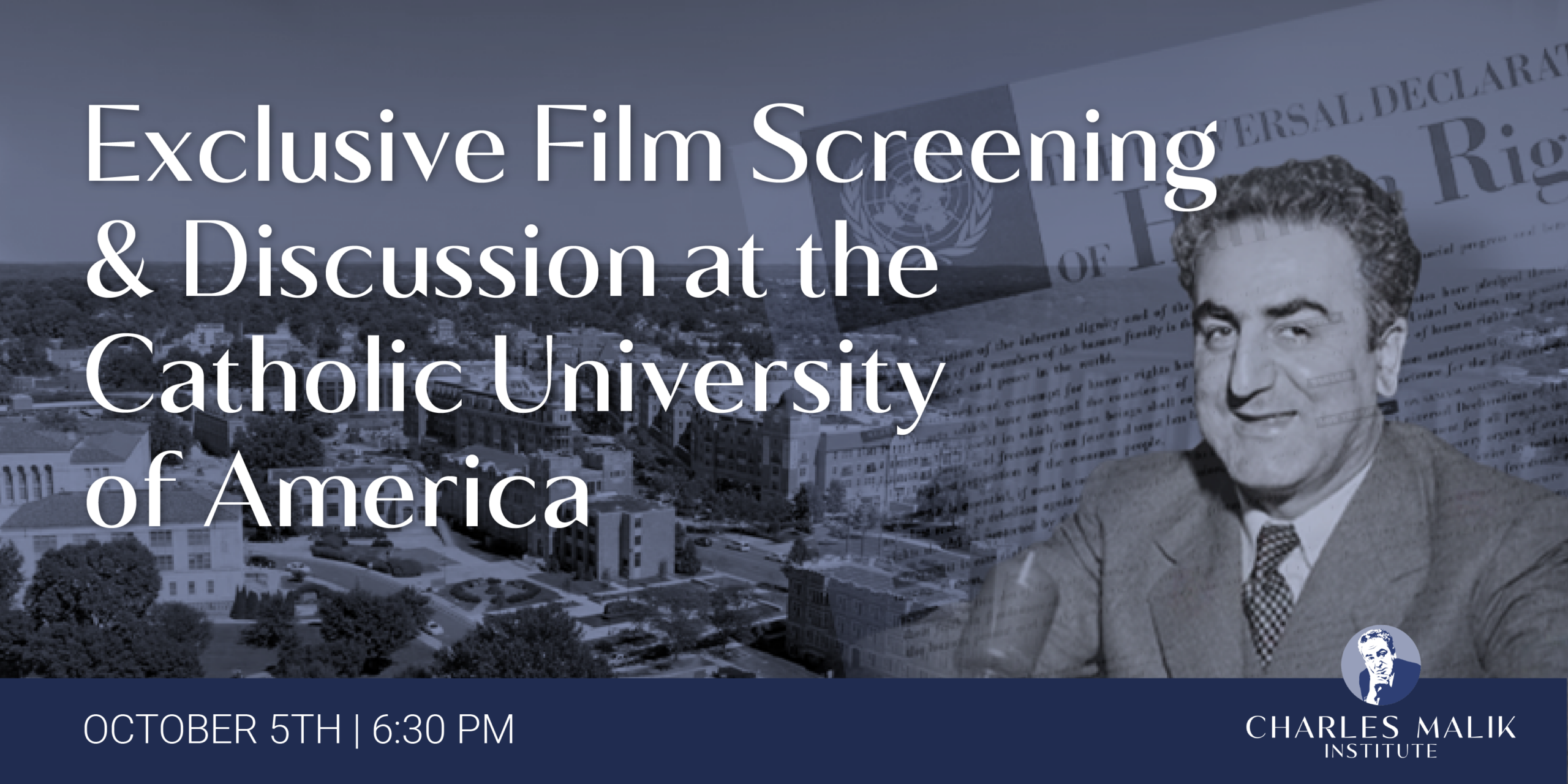 Past CMI Events Isaac and Ishmael? October 20, 2022 @ 6:30 pm Russia and the West March 7, 2023 Leadership Study March 8, 2023 The Crisis of the University April 27, 2023 @ 12:00 pm Christianity: East and West May 3, 2023 @ 7:00 pm Misinformation in the Near East May 31, 2023 @ 12:00 pm America in the World July 5, 2023 @ 12:00 pm The East and West Before and After Communism August 23, 2023 @ 8:00 am The Future of Iran: 1 Year Since the Death of Mahsa Amini September 14, 2023 @ 12:00 pm ORU Film Screening September 29, 2023 @ 6:30 pm UNANCA Film Screening October 3, 2023 @ 6:00 pm D.C. Event: Discussion on Iran October 4, 2023 @ 6:30 pm CUA Film Screening October 4, 2023 @ 6:30 pm Crisis Decision-Making Simulation October 19, 2023 @ 6:30 pm Speaking Engagement at the University of Arizona, Fall 2026 March 1 @ 8:00 am Coming Soon: The First Intellectual Biography of Charles Malik March 1 @ 8:00 am